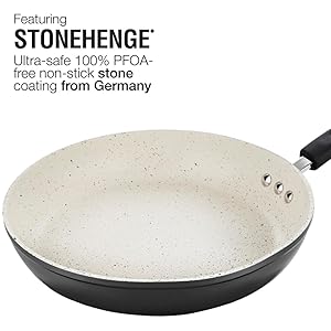 Aluminum nonstick ceramic coating cookware set heats evenly, easy to clean. Ceramic coating interior offers superior stain resistance, free of PFOA and promotes healthy cooking.